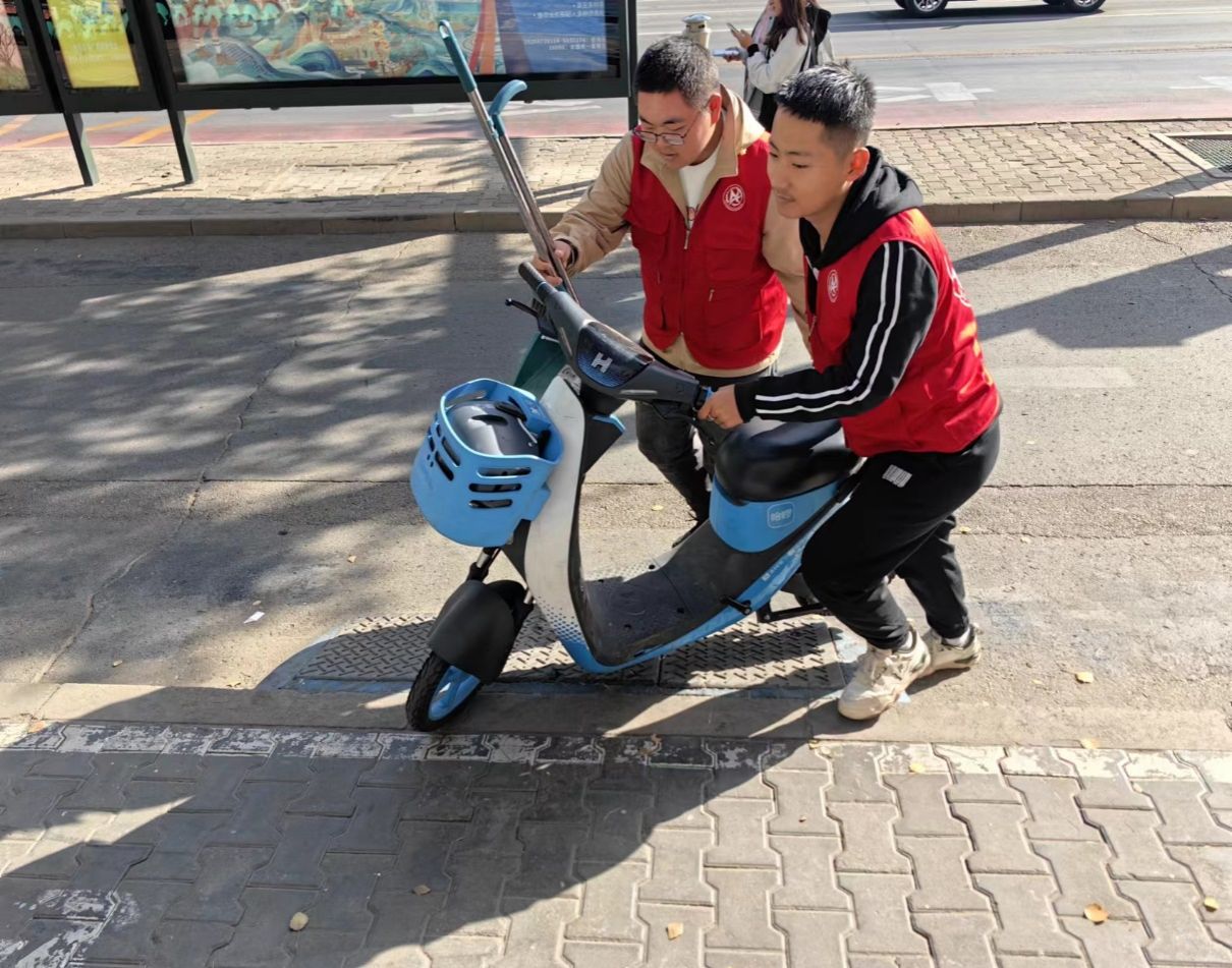 活动中,志愿者们来到社区周边按照“规范停放、摆放有序、朝向一致”的原则,对沿线未按秩序停放的共享单车进行文明摆放,将占道的单车有序归位。期间,志愿者们还向周边群众宣传文明骑行、有序停放的重要意义,引导骑行者将共享单车摆放到停放区域,并鼓励大家监督身边的不文明行为,共同维护良好的城市环境。经过志愿者们的共同努力,网格点沿线60多辆共享单车摆放整齐。此举不仅方便了群众,更美化了市容市貌。