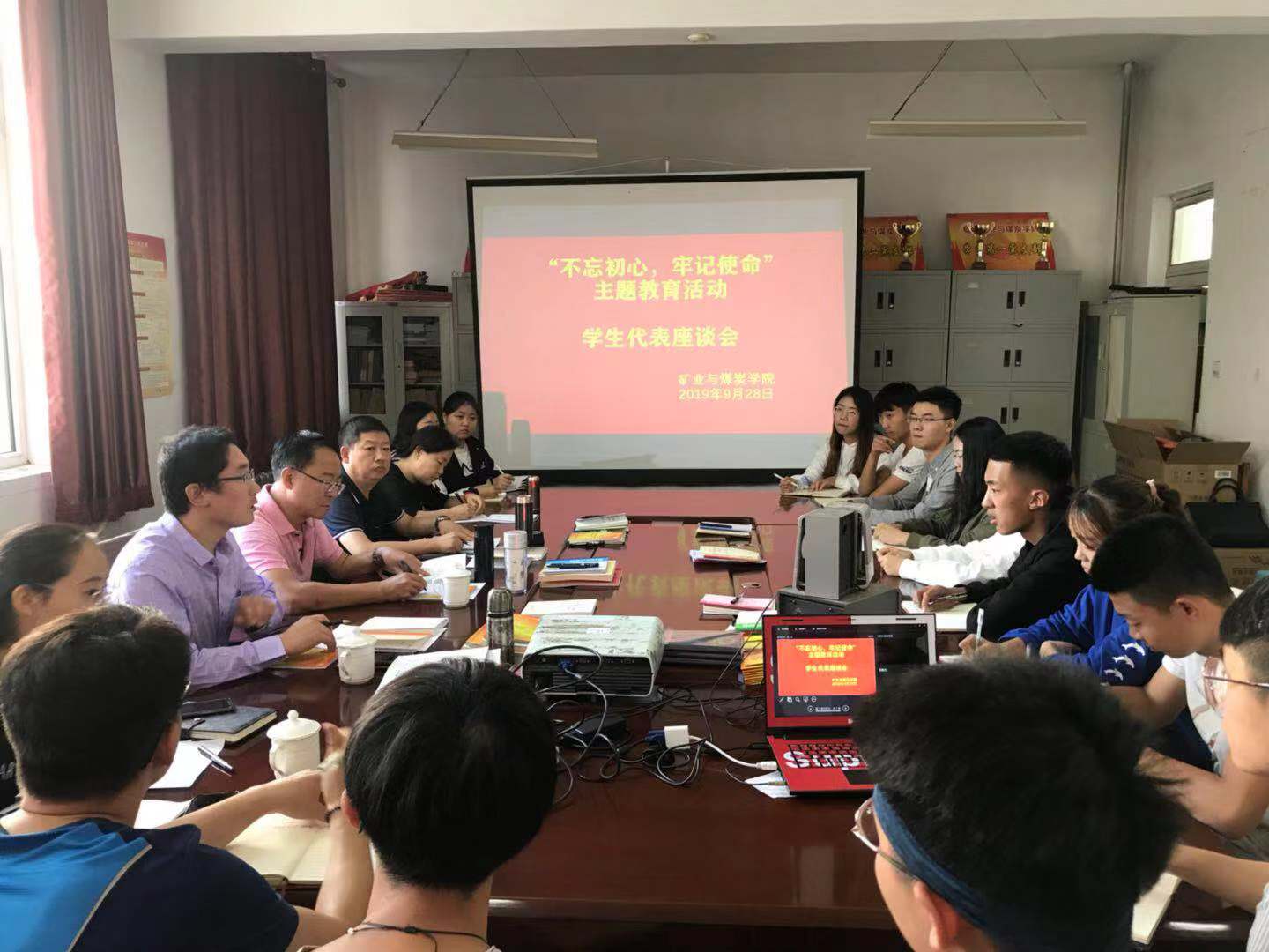 9月28日15:00,矿业与煤炭公司党总支中心组在公司办公楼102开展“不忘初心、牢记使命”主题教育之教师代表座谈会。