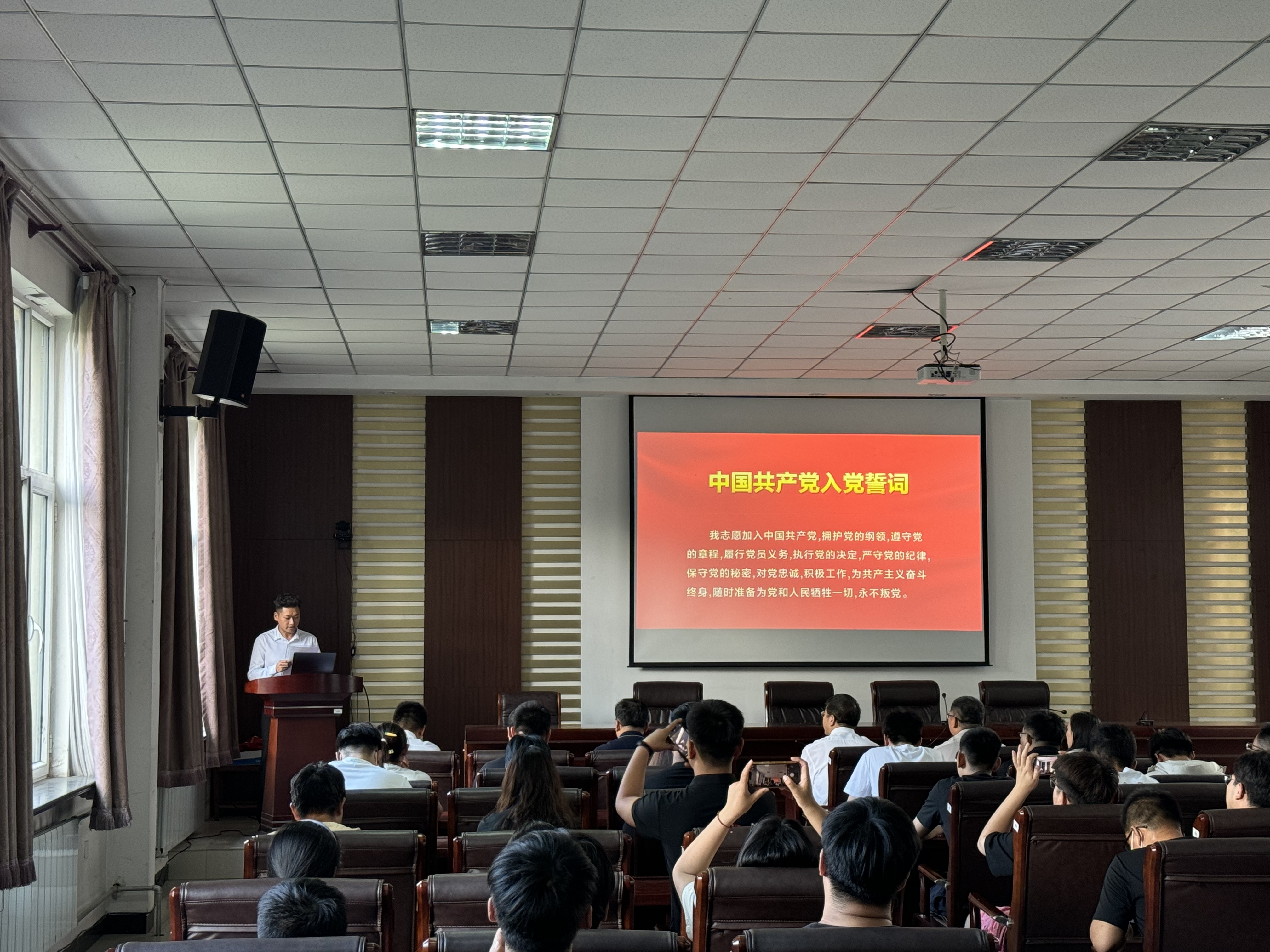 7月1日下午,ladbrokes立博在公司实训实验楼二楼会议室举行2024年“践行入党誓词争做优秀党员”新入党党员宣誓暨党员教育活动。公司领导、本学期32名新入党党员及师生党员参加次活动,活动由公司组织员李计川主持。