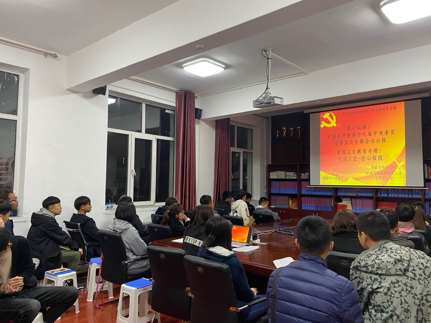 为大力弘扬和培育工匠精神,认真学习“大国工匠”坚韧不拔的意志品格和追求卓越的职业精神,矿业与煤炭公司党总支于2020年1105日晚上19:30,在临曦楼二楼党员之家线上线下同步开展专题理论学习活动。本次学习内容是:第一议题:学习中国共产党第十九届中央委员会第五次全体会议公报;爱国主义教育专题:观看《大国工匠-匠心报国》视频。