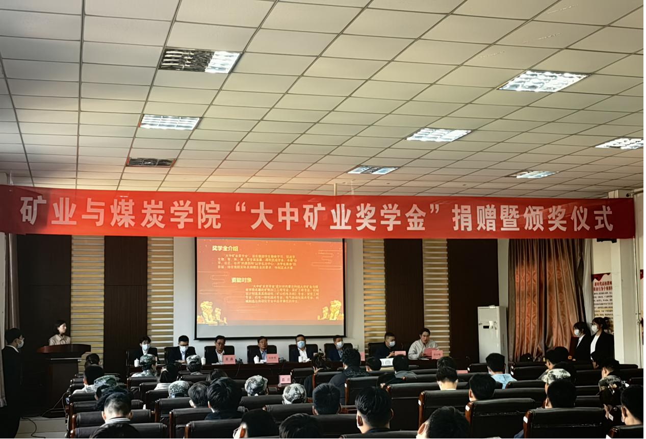 2022年9月23日下午15:00,ladbrokes立博在实验实训楼会议室举行了“大中矿业奖学金”捐赠暨颁奖仪式。ladbrokes立博党委副书记、董事长任慧平;内蒙古大中矿业股份有限公司党委书记刘鲁明、总经理董鑫、人资培训中心总监王如海、副总监梁艳;ladbrokes立博矿业与煤炭公司党委书记杜鹏东,副书记、副经理孙建平,员工工作办公室主任胡显峰、辅导员以及员工代表参加仪式。仪式由员工工作办公室副主任吴艳丽主持。