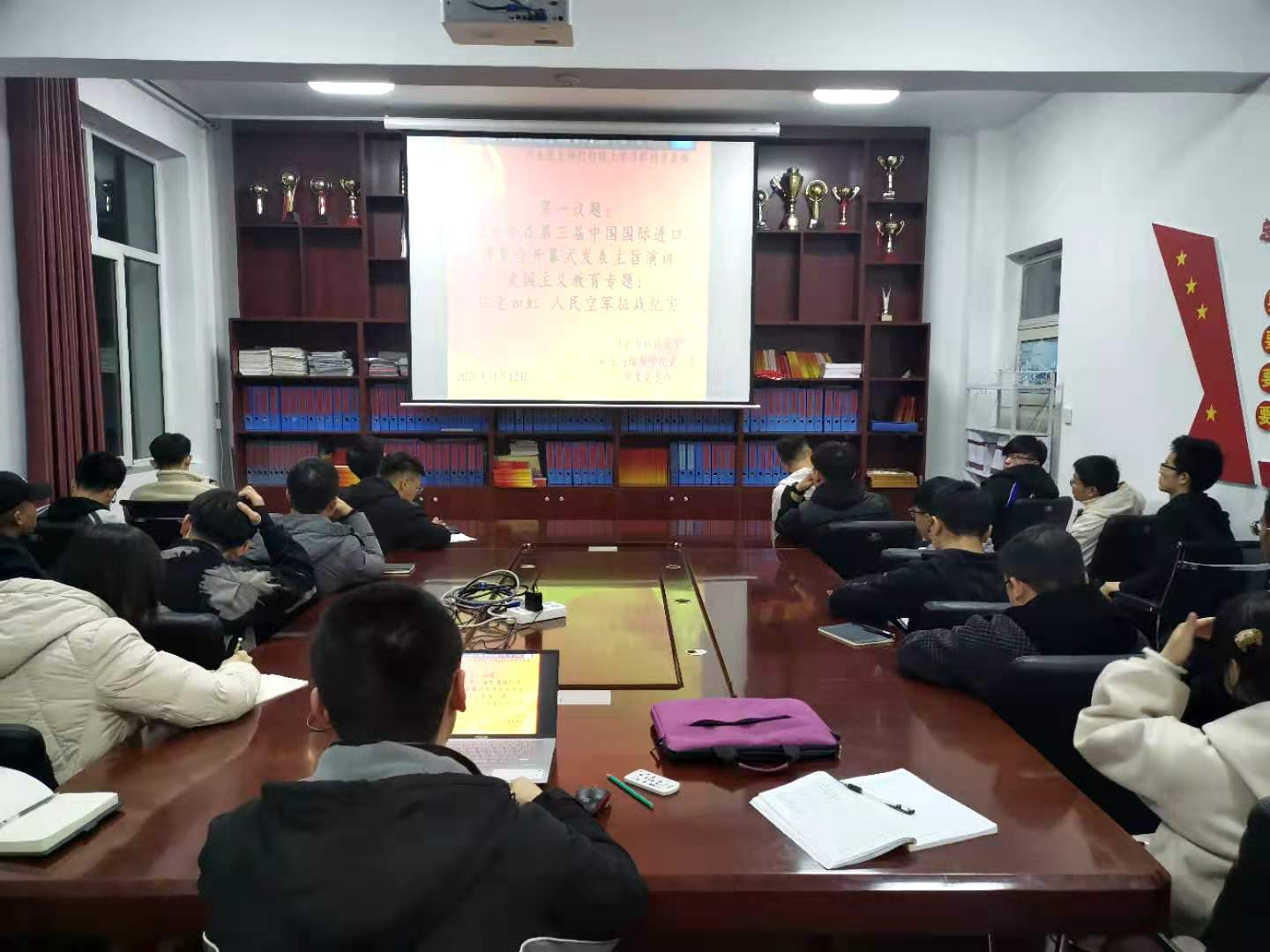 回首人民空军那些刻骨铭心的故事,抒发对人民空军的深厚情义,矿业与煤炭公司党总支于2020年11月12日晚上19:30,在临曦楼二楼党员之家线上线下同步开展专题理论学习活动。本次学习内容是:第一议题:学习习近平在第三届中国国际进口博览会开幕式上发表主旨演讲讲话精神;爱国主义教育专题:观看《征途如虹,人民空军征战纪实》视频。