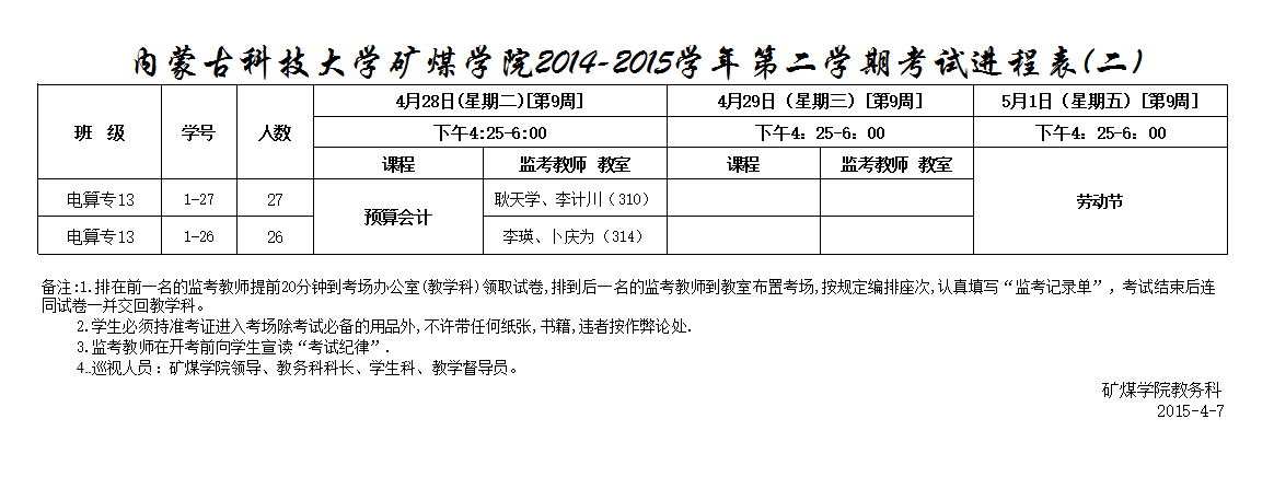 矿煤公司(高职)14-15(2)春学期考试进程表(二)